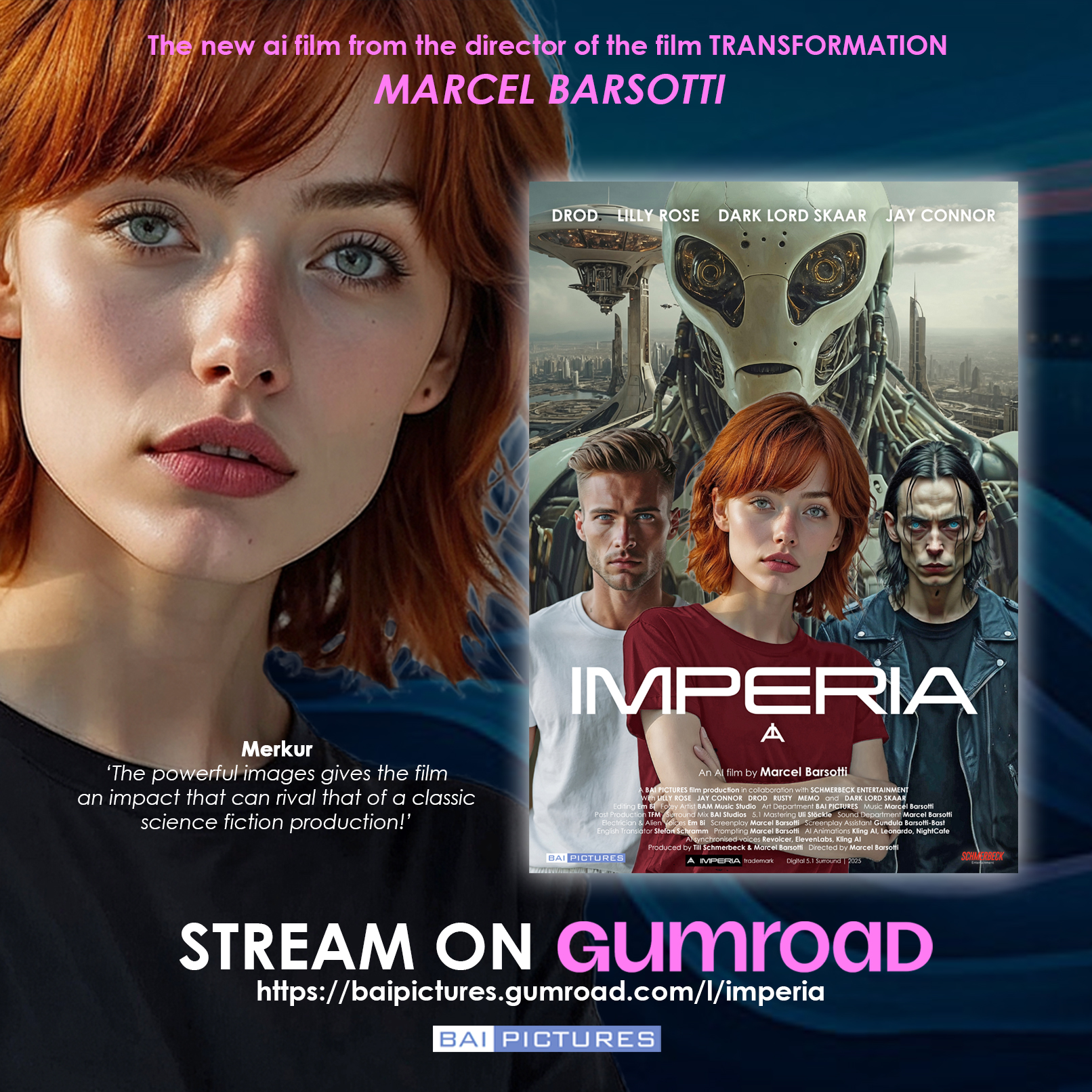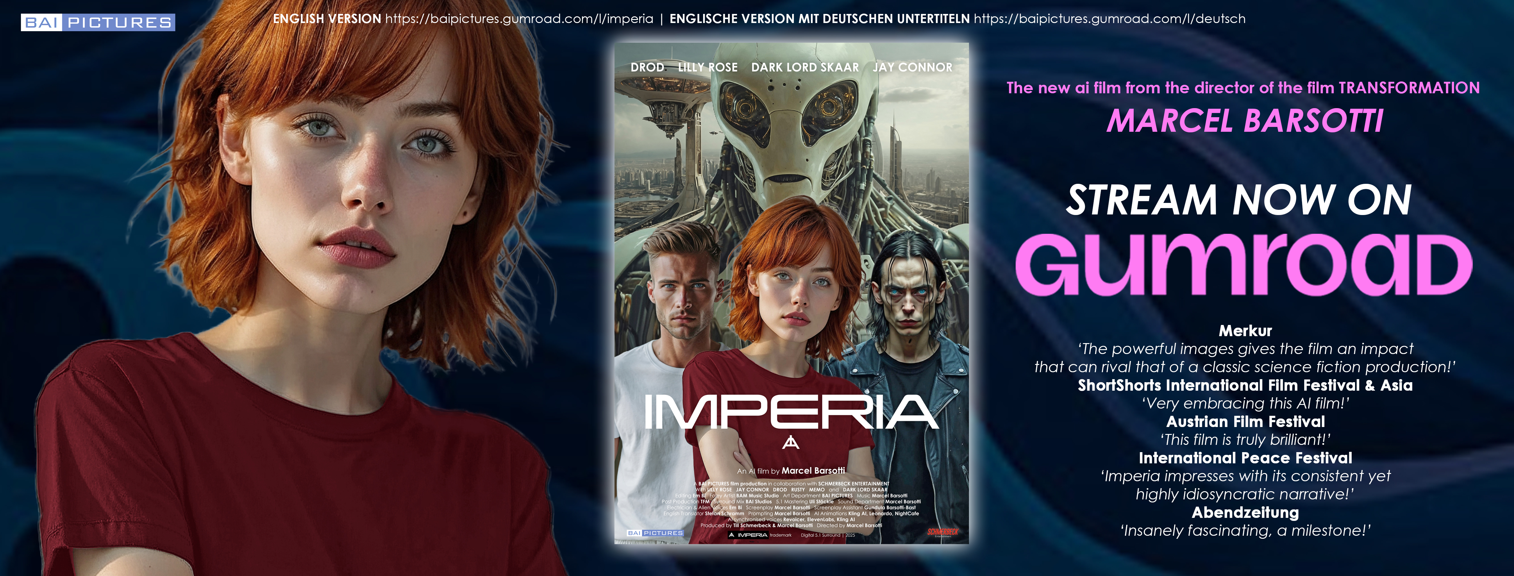BAI PICTURES stands for visionary film projects that combine innovative technology with artistic excellence in a high production value design. Our goal is to set new standards in the world of film through the creative use of AI and to tell stories that inspire and move emotionally.